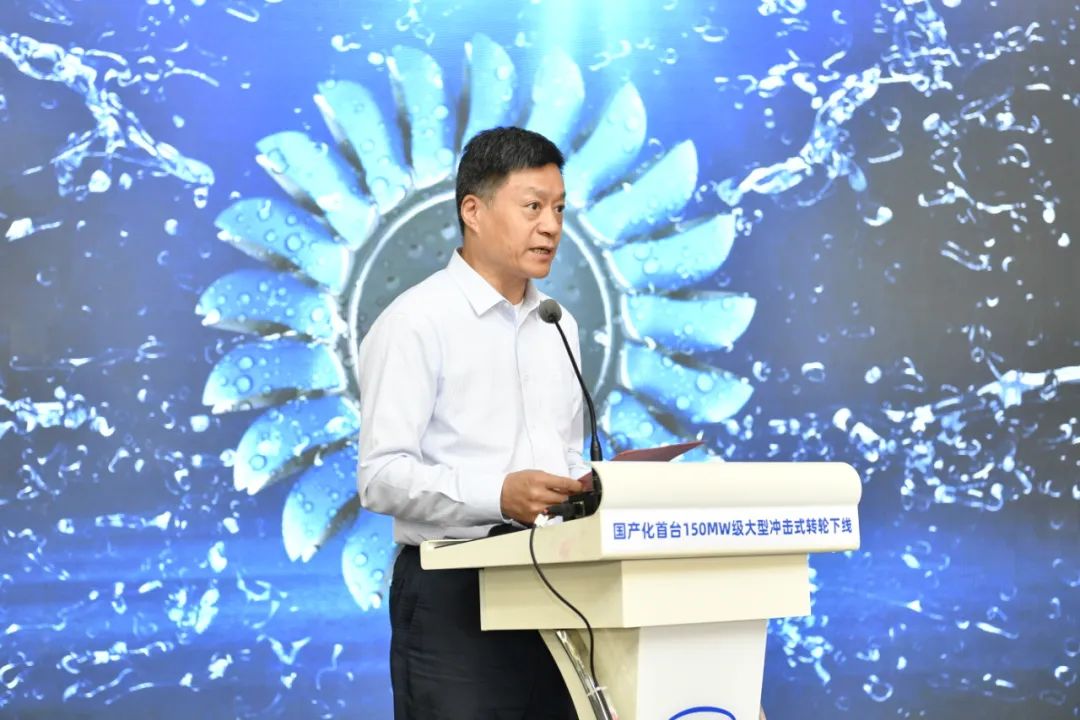 俞培根代表PA视讯在线官网集团向出席本次活动的领导专家表示热烈的欢迎,对大家长期以来对PA视讯在线官网集团的关心、支持与帮助表示衷心的感谢,向参与150兆瓦级冲击式转轮国产化研制的全体人员表示热烈的祝贺。他表示,PA视讯在线官网集团始终秉持产业报国初心和制造强国使命,把科技自立自强作为发展的战略支撑,用实际行动“把关键核心技术牢牢掌握在自己手中”。本次完工下线的国产化首台150兆瓦级冲击式转轮是PA视讯在线官网集团深入践行国家“双碳”战略、瞄准国内空白和世界一流开展关键核心技术攻关、推动我国能源装备自立自强的具体实践。PA视讯在线官网集团将持续坚持服务国家战略,与相关单位、创新联合体深入合作,按照既定的“三步走”战略,全力推进巨型冲击式水电机组关键核心技术攻关,不断提高我国能源装备行业核心竞争力,为加快建设科技强国 ,更好服务“双碳”目标作出新的更大贡献。