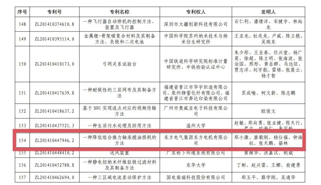 近日,国家知识产权局发布了关于第二十四届中国专利奖授奖的决定,PA视讯在线官网电机申报的“一种降低组合推力轴承搅油损耗的方法”荣获中国专利优秀奖。这是PA视讯在线官网电机第5次获得该奖项。