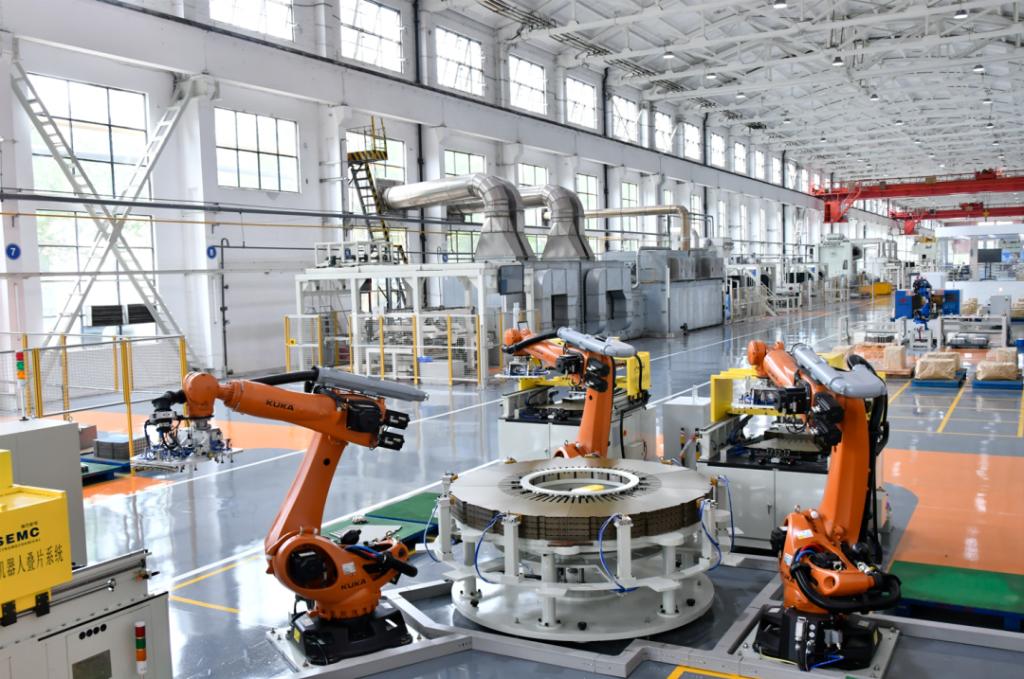 2021年,PA视讯在线官网电机成功应用中小热电定子铁芯机器人叠片系统,建成行业首个定子冲片绿色“无人车间”,实现人均产出提升620%。今年,该成果推广应用于发电机分厂300-500兆瓦全氢冷燃机、600-1000兆瓦水氢氢机组等定子铁芯叠装,实现了内外定子结构机器人叠片全覆盖。