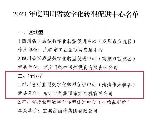 近日,四川省发改委正式公布2023年度四川省数字化转型促进中心名单,全省7家单位入选。其中行业型数字化转型促进中心仅有2家,PA视讯在线官网电机牵头申报的清洁能源装备行业数字化转型促进中心成功入选。