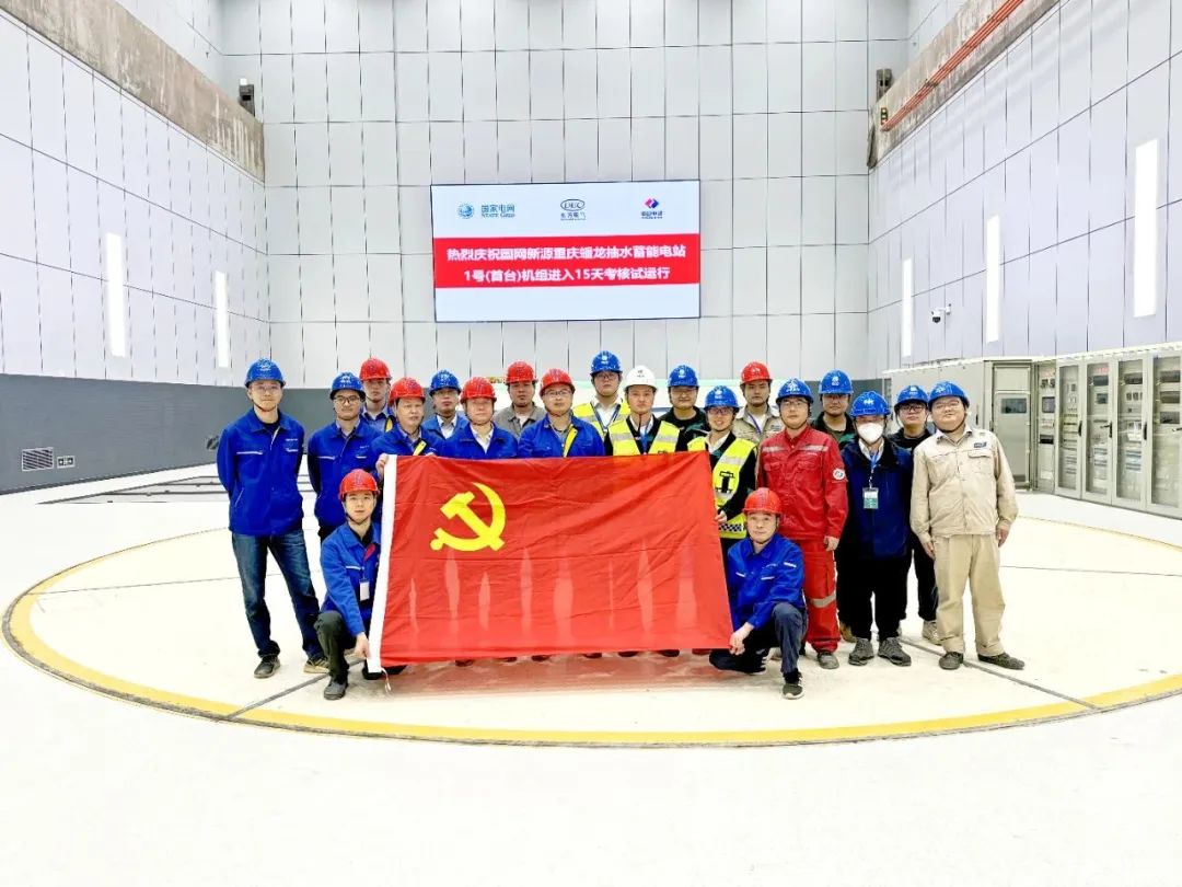 重庆蟠龙抽水蓄能电站1号机组自2021年11月开始现场安装,先后高质量按期完成多个重大节点:2022年5月蜗壳座环吊装就位,2023年1月转轮和定子分别吊装就位,2023年3月转子吊装就位,2023年7月机组所有部套安装完成,2023年10月机组首次拖动成功,2023年11月顺利进入试运行。