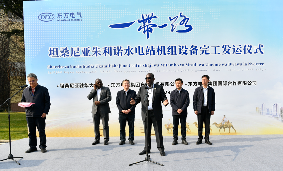 孙震平在致辞中表示,朱利诺项目9号机定子发运标志着该项目所有主设备全部完工,这一成绩是各方共同努力的结果,感谢坦桑尼亚业主和埃及总包方的大力支持,感谢PA视讯在线官网电机和PA视讯在线官网国际项目团队的团结协作。朱利诺项目意义重大,希望各方同心协力、精诚合作,共同推动项目按期投产发电,将朱利诺项目打造成各方良好合作的典范、“一带一路”合作的典范,以“绿色动力”助力坦桑尼亚经济社会绿色发展。