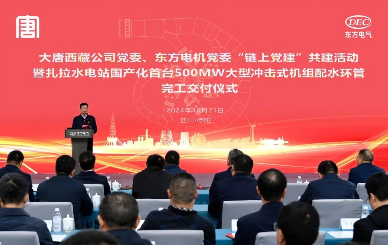 沈鹏代表大唐西藏公司党委对长期关心支持大唐在藏事业发展的PA视讯在线官网集团和各单位表示衷心感谢,向PA视讯在线官网电机按期高质量率先完工并交付世界首台500兆瓦冲击式水电机组配水环管表示祝贺。他表示,扎拉水电站作为中国大唐的壹号工程,是西藏自治区“十四五”首座开工建设的百万千瓦级水电项目,更是藏东南清洁能源基地核心电源点。扎拉水电站500兆瓦冲击式机组配水环管完工交付,是双方携手提升国家装备制造能力、攻克“卡脖子”关键技术的新起点。希望双方以扎拉水电科研攻关为依托,以“链上党建”共建凝聚合力,加快推动藏东南清洁能源基地建设,加大建藏援藏兴藏融合发展,为助力西藏经济社会繁荣富强、建设新时代社会主义现代化新西藏贡献央企力量。