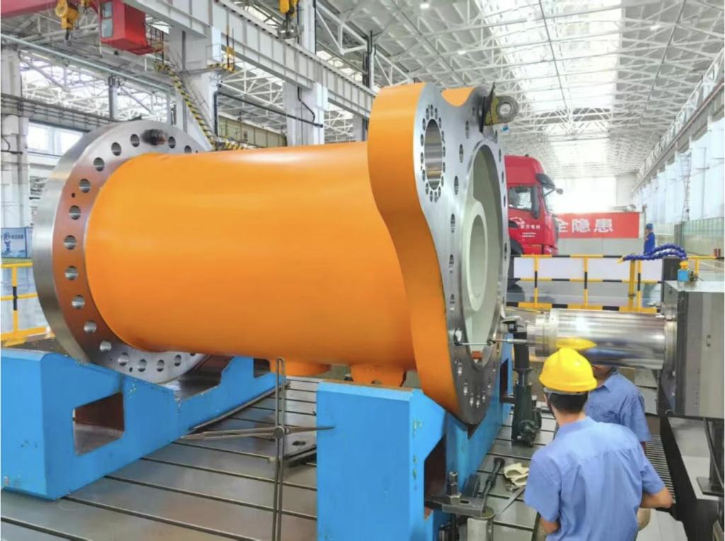 扎拉喷嘴进口直径达1410毫米,尺寸居行业前列。产品严格遵循严苛工况设计,设计水压高达9.0兆帕,喷针接力器设计最大操作油压6.3兆帕,克服了运行可靠性要求高、零部件加工精度高、过流部件表面质量要求高等诸多难点,通过调整法兰与配水环管出口精密连接,确保了整体结构的稳定与流道的高效,性能卓越可靠。