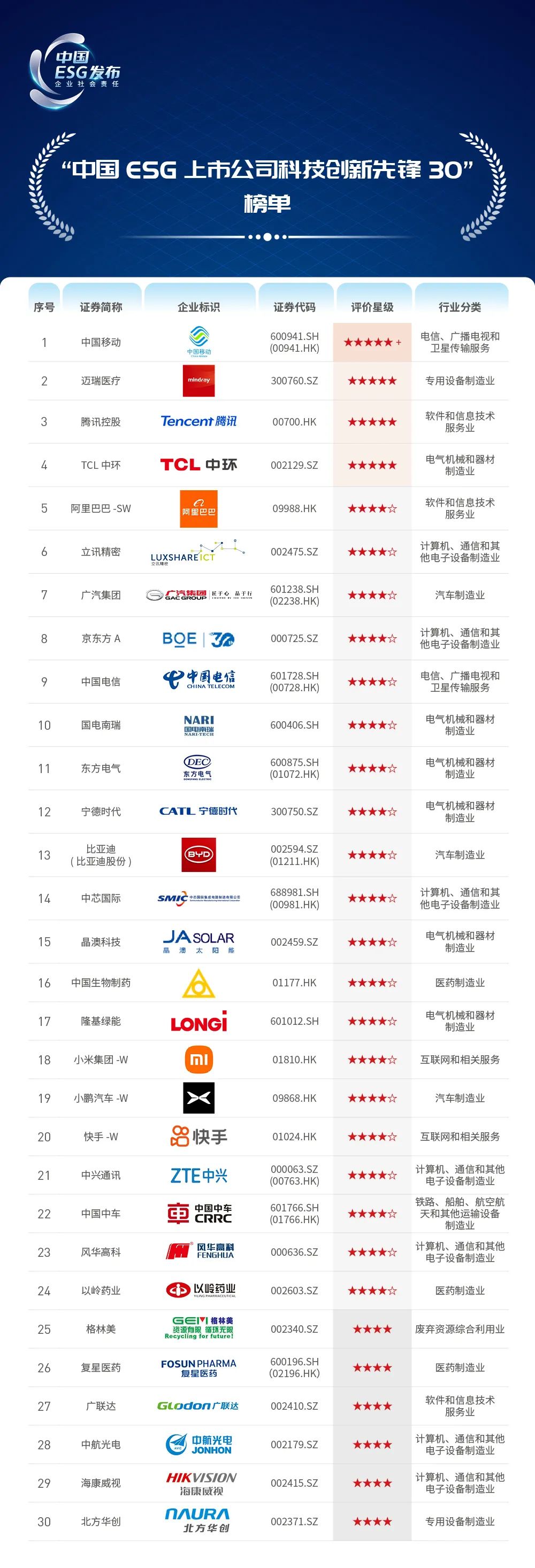 《报告》主要由“中国ESG上市公司科技创新先锋30”榜单和“科技企业ESG行动十大发现”构成。PA视讯在线官网股份有限公司成功入选“中国ESG上市公司科技创新先锋30”榜单。