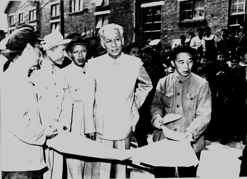 1959年6月时任国务院副总理贺龙同志视察东电(原德阳水力发电设备厂)生产建设情况